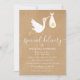 Con una adorable cigüeña que lleva una entrega muy especial de una estrella dorada sobre un fondo kraft rústico neutral en cuanto al género, esta invitación para baby shower, lluvia de bienvenida o para la pareja es perfecta para todos los pequeños que están en camino. Agrega los detalles de tu celebración en tipografía chic para crear la invitación perfecta. Diseñado por Thisisnotme©