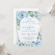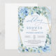 Invitación Lluvia de Boda Azul Rústico Rosas Dorado Geométric
