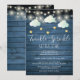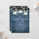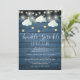 Invitación de lluvia de estrellas para baby shower con luces de guirnalda y nubes verdes menta y estrellas doradas en cuerdas, sobre un fondo de madera rústica azul, esta invitación de baby sprinkle neutral es perfecta para todos los pequeños que están en camino. Agregue los detalles de su celebración especial para crear la invitación perfecta. Diseñado por Thisisnotme