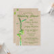 Esta invitación vertical de lluvia de regalos para la novia de estilo rústico presenta un tallo de bambú espiralado en la parte delantera con los detalles de la fiesta de la plantilla en un fondo de arpillera. La esquina superior izquierda del reverso tiene tallos de bambú dobles entrelazados y hojas de bambú en la esquina inferior derecha. Personalice el texto en los campos de la plantilla o edite utilizando la herramienta de diseño para seleccionar un estilo de fuente, tamaño y color que prefiera.