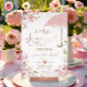 Paraguas Rosa Lluvias de Abril Traen Flores de Mayo Invitación de Cumpleaños de Bebé con Floral y Verdor