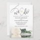 Esta hermosa invitación a la boda es romántica, elegante y divertida. Incluye letras de guión que dicen "lo hacemos" con un corazón lindo entre las palabras. La obra de arte incluye una magnífica rosa blanca de marfil de tallo largo en su costado, que se refleja en una piscina de agua. En la parte trasera de la invitación hay un ramo de rosas rosas rosadas atadas con un arco de satén blanco, así como una sección de detalles que incluye un código QR de personalizable, y un espacio para una nota corta para que puedas dirigir a tus invitados a tu sitio web boda para más información y/o a RSVP. Elegante, elegante y sofisticado, esta invitación es la manera perfecta de invitar a sus amigos y familiares a compartir su alegría en su día especial.