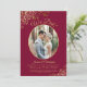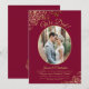 Esta hermosa invitación para la recepción de la boda o la fiesta posterior presenta un título elegante con letra cursiva que dice "¡Lo hicimos!". Tiene un diseño simple pero elegante con letras doradas y elegantes sobre un fondo de color burdeos, granate o vino tinto, y tu foto en un marco ovalado rodeado de volantes de encaje de lámina falsa. Perfecto para escapadas románticas o celebraciones que tienen lugar después de una ceremonia privada. Una excelente manera de invitar a familiares y amigos a celebrar tu amor.