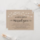 Hermosas Luces de Cadena de Granja Rústica Moderna, fuente de letra negra en fondo de Kraft marrón, Anuncio de Huida de Novios, tarjeta de invitación (Lo hicimos y te extrañamos). Esto es perfecto para la recepción de su boda y la fiesta de celebración después de la boda. Agregue sus detalles en la misma letra / letra.