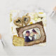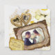 Crea tu propia invitación conmemorativa con este hermoso diseño que presenta un relicario en forma de corazón con un acabado dorado antiguo para tus fotos individuales, y un precioso marco de imagen barroco para tu foto de pareja o grupo. Un papel de pergamino vintage sostiene tus nombres personalizados y el evento. Reemplaza las fotos y el texto de muestra con los tuyos para un diseño personalizado. Perfecto para celebraciones de aniversario de bodas.