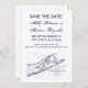 Mapa Antiguo del Oeste de Long Island y The Hamptons en Azul Marino - Invitación de Boda