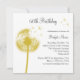 Un flúo y delicado diente diente de león decora esta invitación de cumpleaños. Se puede personalizar fácilmente para cualquier edad.