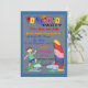 Su hijo está teniendo un cumpleaños y él cava totalmente la resaca. Tan aquí está la invitación perfecta del cumpleaños para él. Los "muchachos cogen invitación de una onda". La atracción de un fondo azul, con la lectura brillante "FIESTA del texto de CUMPLEAÑOS" y "coge una onda". Hay también un niño realmente fresco que practica surf una onda y una tabla hawaiana pegadas en la arena.