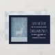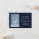 Guarda la tarjeta de fecha para un fiesta de navidades. Diseñado con un fondo de madera falsa de tonos azules. Encendido sobre la parte superior hay una silueta de un reno con grandes cuernos y algunos ilustraciones de copos de nieve cayendo a su alrededor.