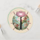 Una bella mariquita rosa y azul cubierta de Rosas victorianos, ambientada con un fondo de crema clara. Una linda huella victoriana vintage. Perfecto para una pequeña fiesta o una ducha para bebés.