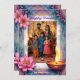 Cozy up your Diwali wishes with the Lotus Lounge greeting card—a warm, vibrant tribute to family, tradition, and sparkle. Available in printed or digital formats, this design features your custom photo framed in an ornate arch surrounded by lotus blooms, glowing diyas, and festive patterns. The soft lighting and joyful expressions make your portrait the heart of the celebration.
