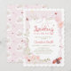 A soft and elegant baby shower invitation featuring blush pink florals, delicate greenery, charming ladybugs, and a graceful bow. The gentle pastel color palette and romantic garden style make this design perfect for a baby girl shower. Matching items available.