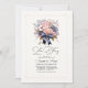 Celebre con estilo esta elegante invitación a realizar un ensayo con un impresionante ramo de rosas rosa pastel, hortensias y lirios adornados con un sofisticado arco azul marino. El delicado borde rosa y los elegantes tipos de letra de guión le dan un toque atemporal, lo que lo hace perfecto para celebraciones formales o románticas de bodas. Personalizable completo para adaptarse a los detalles del evento.