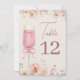 Champagne pink bridal shower table number featuring a Love in Bloom theme with elegant bow details. Designed to coordinate beautifully with floral and romantic decor while helping guests find their tables with ease. Ideal for bridal showers, engagement parties, and wedding shower celebrations. Editable text. Clean print-ready layout.