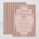 Celebrate the bride-to-be with this charming Love is Brewing bridal shower invitation, perfect for a cozy and stylish coffee theme celebration. Featuring soft blush tones, elegant vertical stripes, and delicate script lettering, this design is accented with beautifully detailed hand drawn elements, including a vintage-inspired frame and a sweet coffee cup illustration.