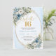 Celebrate a milestone moment with this elegant Sweet Sixteen invitation, featuring a refined watercolor design of dusty blue florals blended with soft white flowers and fresh eucalyptus greenery. Framed by a shimmering gold glitter border and paired with graceful script lettering, this invitation sets a sophisticated tone for a truly unforgettable Sweet Sixteen, Sweet 16th, or 16th birthday celebration.