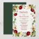 Lovely Red Roses Garden-Inspired Bridal Shower Brunch Invitation Card Design with Dark Green Background.