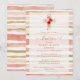 Lovely Wildflowers Botanical Christian Cross Baptism Invitation Card Design with Delicate Soft Stripes Pattern.