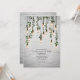 Luces Edison vintage decoradas con vegetación botánica que cuelgan de arriba sobre fondo de ladrillo blanco. Invitación para una fiesta de cualquier propósito adecuada para cumpleaños, boda, inauguración, inauguración de casa, profesional, apertura, aniversario, cena, etc.