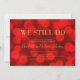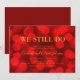 Invitación de aniversario de boda elegante que presenta las palabras "We still do" en lámina dorada falsa sobre un fondo de luces bokeh rojo rubí vibrante en el lado frontal y un fondo de color rojo oscuro en el lado posterior. Esta invitación es perfecta para celebrar un aniversario de boda de cualquier año simplemente agregando el número de años que se celebran en el texto del marcador de posición.