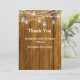 Bienvenido a nuestra tienda donde lo rústico se encuentra con la elegancia. Esta única "Invitación de agradecimiento con luces colgantes de frasco de albañil de madera rústica" es la elección perfecta para aquellos que buscan un toque encantador para su ocasión especial. Imagina la belleza de un fondo de madera de patio de granero, adornado con delicada tipografía de escritura blanca y el cálido resplandor de luces de cuerda de frasco de albañil colgantes vintage de vaquero de campo. Es como retroceder en el tiempo a una época más simple, donde el amor y la celebración ocupaban el centro del escenario.