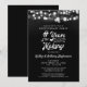 Celebre cualquier aniversario de bodas con invitaciones en negro y blanco que presentan un diseño de título con tipografía de letra caligráfica retro # AÑOS EN CREACIÓN que incorpora cuántos años llevan casados (por ejemplo, 50 AÑOS EN CREACIÓN) y el año de su boda dentro del diseño con un borde de luces de cuerda. Contacte al diseñador a través de Zazzle Chat o makeitaboutyoustore@gmail.com si desea que se modifique este diseño, en otro producto o si desea artículos coordinados.