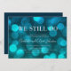 Invitación de aniversario de boda elegante que presenta las palabras "We still do" en lámina de plata falsa sobre un fondo de luces bokeh azul aqua en el lado frontal y un fondo de color azul oscuro en el lado posterior. Esta invitación es perfecta para celebrar un aniversario de boda de cualquier año simplemente agregando el número de años que se celebran en el texto del marcador de posición.