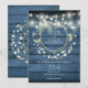 Invitación Luces de Cadena Azules Madera Rústica Verde Weddin