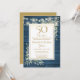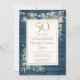 Luces de cadena bonitas y vegetación delicada de jardín campestre en acuarela sobre un fondo de madera rústica azul, esta invitación de aniversario elegante se puede personalizar con la información de su celebración de 50 años de aniversario, con un fondo dorado en el reverso. Diseñado por Thisisnotme©