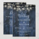 Invitación Luces de Cadena de Boda de Madera Rústica Azul Cód