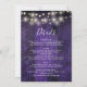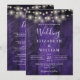 Esta invitación de boda con luces de cadena de madera de granero morado rústico todo en uno se puede personalizar con su información en tipografía moderna y detalles de la boda en el reverso. Diseñado por Thisisnotme©