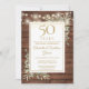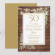 Con luces de cadena bonitas y delicado verdor de jardín campestre en acuarela sobre un fondo de madera rústica, esta elegante invitación de aniversario se puede personalizar con la información de su celebración especial de 50 años de aniversario, con un fondo dorado en el reverso. Diseñado por Thisisnotme©