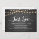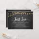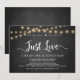 Nada Lujoso, Solo Amor de Fiesta, Tarjeta de Anuncio / Invitación de Boda de Escape, en Pizarra de Tiza Rústica Moderna, diseño de Luces de Cadena. Esto es perfecto para la recepción de su boda y la fiesta de celebración después de la boda. Agregue sus detalles en la fuente / letra coincidente. #TeeshaDerrick