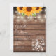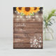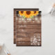 Una invitación de boda rústica elegante que presenta hermosos girasoles, luces de cadena y frascos mason. Los nombres de la feliz pareja están escritos en una elegante letra cursiva sobre los detalles especiales de la boda en un fondo de madera rústica. El reverso presenta las iniciales de su monograma dentro de un girasol a juego. Diseñado por Thisisnotme