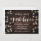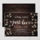 Hermoso Nada Elegante, Solo Amor, Tarjeta de invitación para boda y anuncio de elopamiento, con diseño rústico moderno, Luces de cadena de granja, tema de papel marrón de madera. Esto es perfecto para la recepción de su boda y la fiesta de celebración después de la boda. Agregue sus detalles en la fuente / letra coincidente.