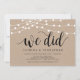 Invitación Luces de Cadena Kraft, letra negra, Huida de Boda