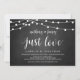 Nada Hermoso y Sencillo, Solo Amor, Tarjeta de Anuncio de Boda / Invitación de Fiesta, con diseño rústico moderno, Luces de Cadena de Granja, tema Pizarra. Esto es perfecto para la recepción de su boda y la fiesta de celebración después de la boda. Agregue sus detalles en la fuente / letra coincidente.