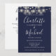 Invitación Luces de Cadena Script Azul Marino Código QR Boda