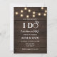 Invitación a la recepción de boda de Hago BBQ. Una forma casual de invitar a seres queridos a su recepción de boda después de una fuga o una ceremonia privada. Con fondo de madera de granero y luces de hadas.