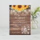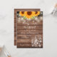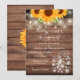 Con girasoles bonitos, luces de cuerda, frascos de mason y ramos de flores silvestres sobre un fondo de madera rústica. Esta elegante invitación de boda se puede personalizar con la información de su día especial de boda. El reverso presenta las iniciales de su monograma dentro de un girasol a juego. Diseñado por Thisisnotme©