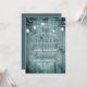 Invitaciones de renovación de votos de aniversario con luces de frasco de albañil y madera rústica - fondo de tablas de madera de playa con aspecto antiguo, vintage y pintado de teal. La parte superior está adornada con faroles de frasco de albañil vintage "brillantes" colgantes y luces de cadena románticas para exteriores. Dice 'We Still Do' en letra de estilo western con 'Vow Renewal' debajo en letra teal y el año de aniversario arriba en letra curva. Los detalles de la fiesta de aniversario, incluyendo la información de RSVP, están debajo. La parte trasera tiene un fondo teal sólido coordinado, que se puede cambiar a cualquier color que prefiera. Nota: Todas las imágenes se imprimen. Utilice el botón Personalizar para cambiar cualquier cosa: estilos de letra, tamaños, colores o ubicación. Invitaciones country románticas para verano u otoño, fiesta de aniversario rústica al aire libre, tema de boda de playa, boda en el patio trasero y estilos de aniversario de b