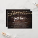 Hermoso Nada Lujoso, Solo Amor fiesta, Tarjeta de anuncio / invitación de boda de escapada, en madera oscura rústica moderna, diseño de luces de cadenas. Esto es perfecto para la recepción de su boda y la fiesta de celebración después de la boda. Agregue sus detalles en la fuente / letra coincidente.