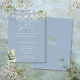 Esta elegante invitación de fiesta de compromiso con luces de cadenas florales azul polvoriento puede ser personalizada con su información en tipografía chic con sus iniciales de monograma en el reverso. Diseñado por Thisisnotme©