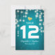 Plantillas de Asientos de Boda / Número de Mesa / Tarjetas de Acompañamiento - Elegantes Luces de Cadenas Vintage con Fondo Brillante de Turquesa Azul.