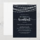 Esta invitación de desayuno de boda con luces de cadenas rústicas es perfecta para una celebración moderna. El diseño presenta hermosas luces de cadenas pintadas a mano en un fondo azul oscuro.