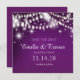 Esta linda invitación de Salva la Fecha presenta luces de cadenas brillantes en un fondo violeta profundo. Rústicas y elegantes, son perfectas para bodas de invierno, bodas de otoño, cumpleaños importantes o cualquier ocasión especial. Contactame para cambio de color o solicitud especial en cheryl@cheryldanielsart.com. Cheryl Daniels © 2016.