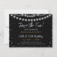 Contenti plateado y negro con diseño de plantilla de luces de cadena. Ajustable para cualquier adulto mayor ahorra las invitaciones de fiesta de cumpleaños. Invitación de descarga digital imprimible