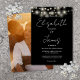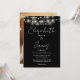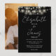 Esta invitación de boda con luces de cuerda negras y blancas con letra elegante puede ser personalizada con su información en tipografía chic y foto especial en el reverso. Diseñada por Thisisnotme©
