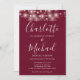 Con luces de cuerda bonitas y nombres de estilo característico, esta elegante invitación de boda se puede personalizar con los detalles de su día de boda en letra blanca chic sobre un fondo de borgoña con la foto elegida en el reverso. Diseñado por Thisisnotme©