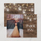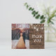 Esta hermosa y elegante tarjeta de agradecimiento presenta tu propia foto, y frascos mason rústicos y luces de cuerda en un fondo de madera oscura. Fácil de personalizar con tu propia foto, nombres y sentimiento de agradecimiento. Por favor, ponte en contacto conmigo con cualquier personalización de diseño adicional que puedas necesitar para tu hermosa boda. Diseño © de TK Goforth. Para artículos coordinados, por favor visita mi colección de Bodas con Frascos Mason Rústicos y Luces de Cuerda y mi tienda Zazzle: